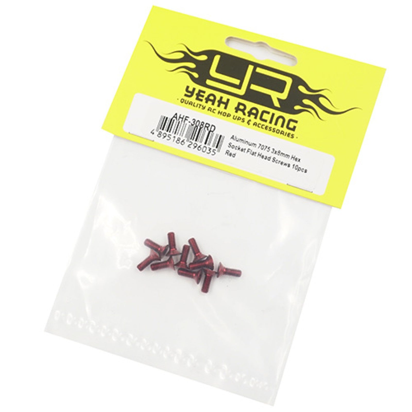 Yeah Racing Aluminum 7075 3x8mm Hex Socket Flat Head Screws 10pcs Red #AHF-308RD