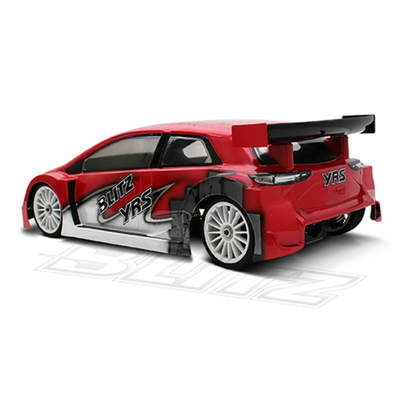 This is the Blitz YRS bodyshell for the FWD class. The YRS body is designed to give more steering and stability for both front and middle motor FWD cars. The dimensions of the YRS bodyshell meet the new EFRA FWD bodyshell rule and there is 2 thicknesses available with the standard body built in 0.7mm thick polycarbonate and the lightweight in 0.5mm. The YRS comes with light decals and a window mask.