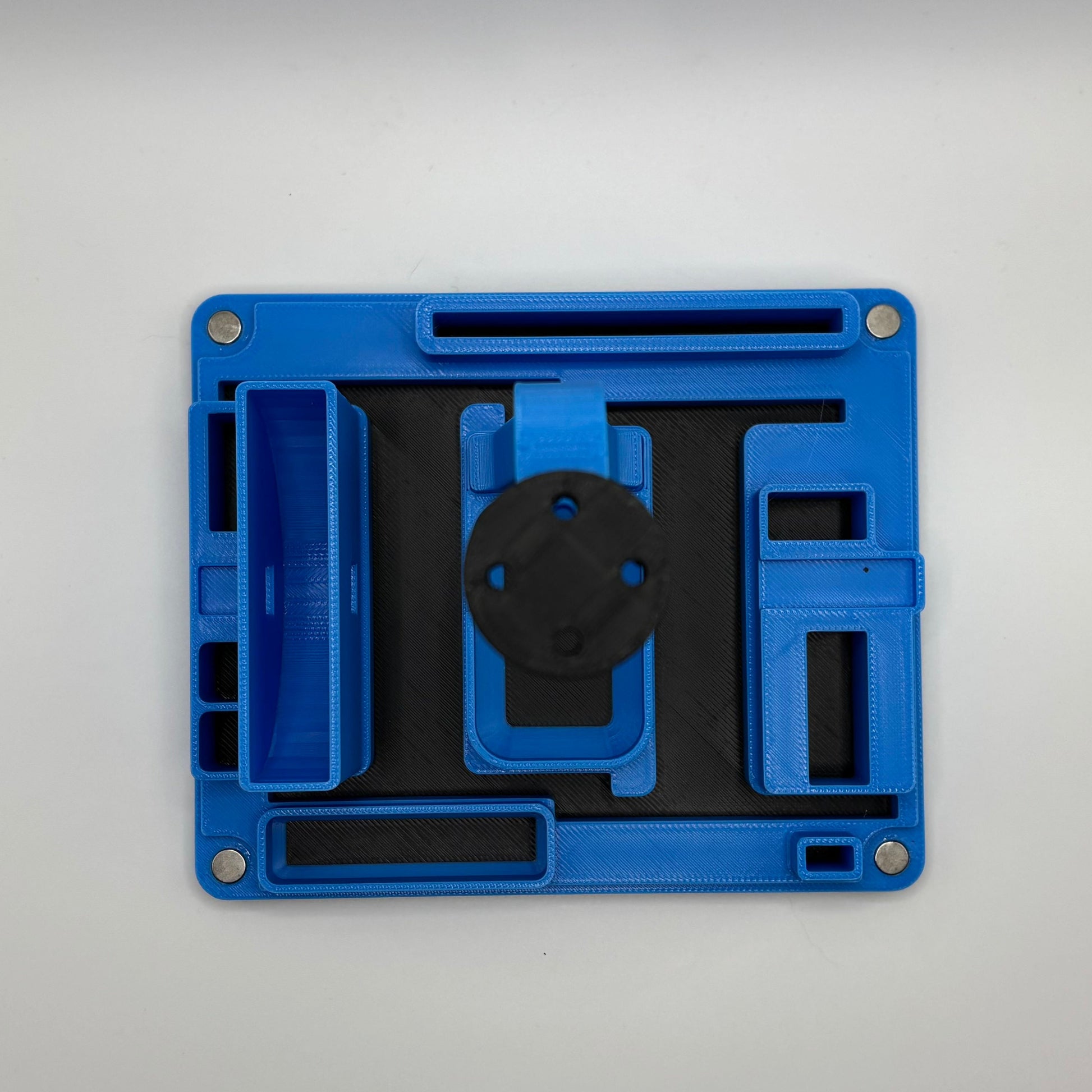One of the more arduous tasks of RC racing is setting up the setup station every raceday and evening. What better way to remove this by storing the pieces all ready to go and also presentable on your pitmat.